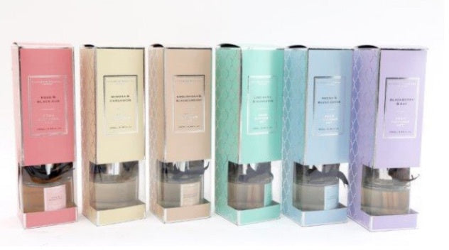 A charming assortment of glass reed diffusers, featuring various sweet scents and comes in a pastel coloured display box.