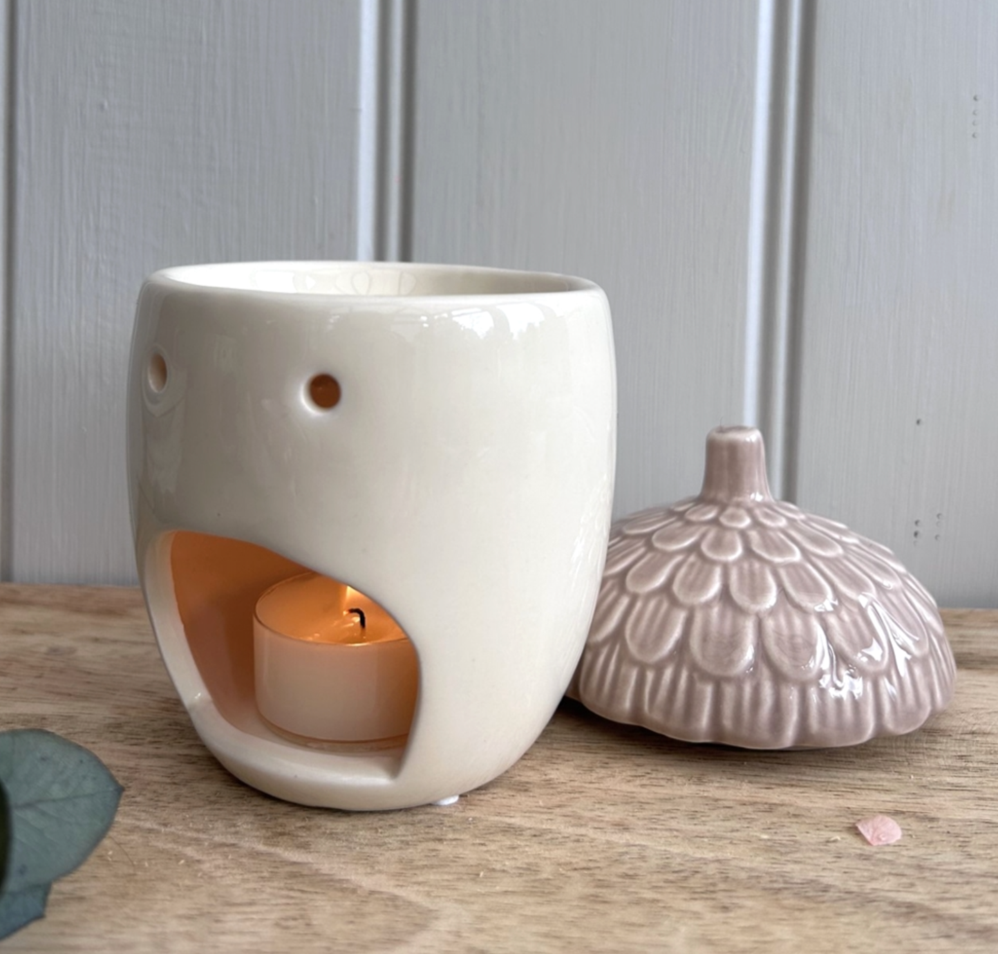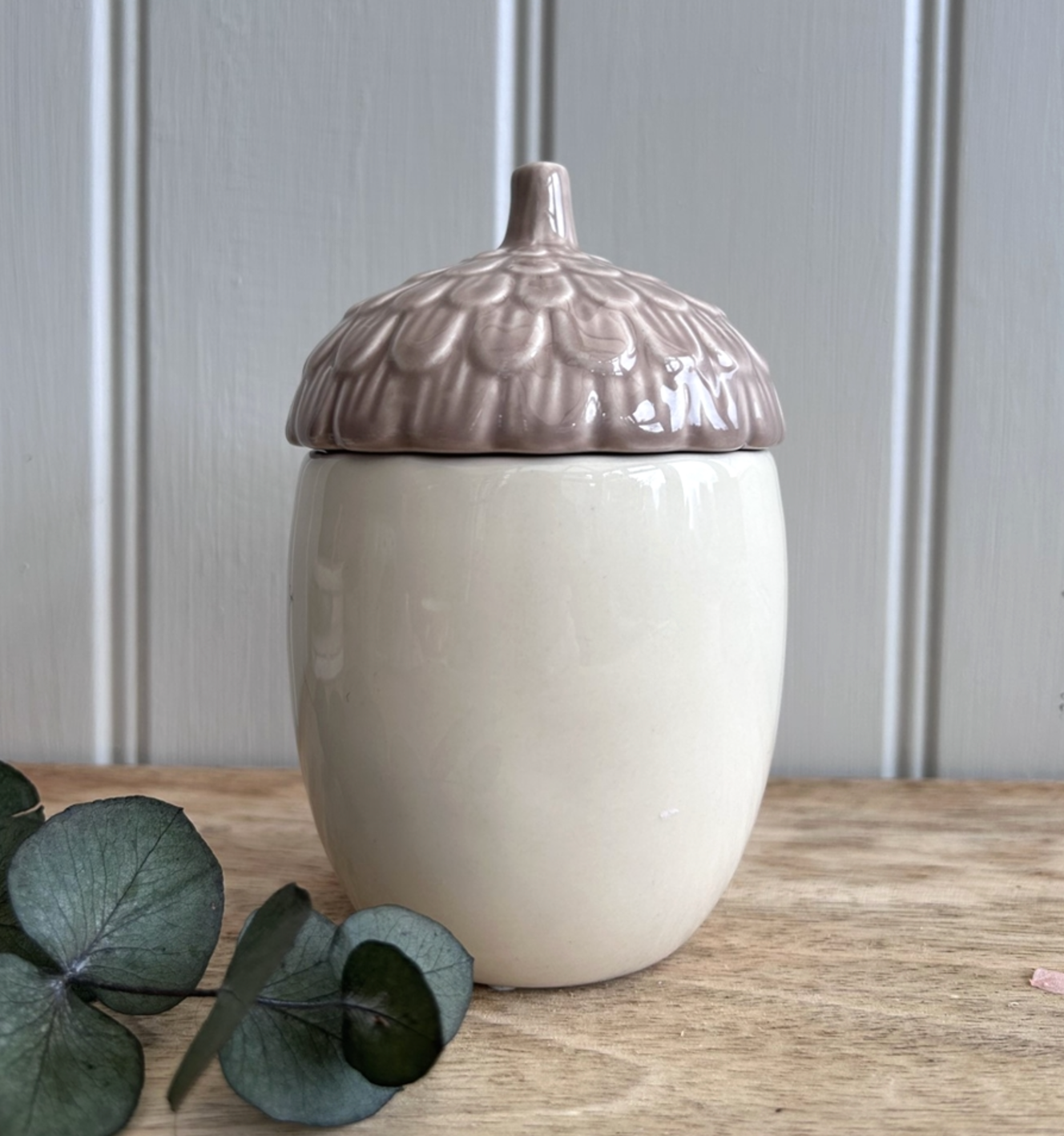 Ceramic Acorn Wax Burner with Lid 13cm - Cream/Taupe
