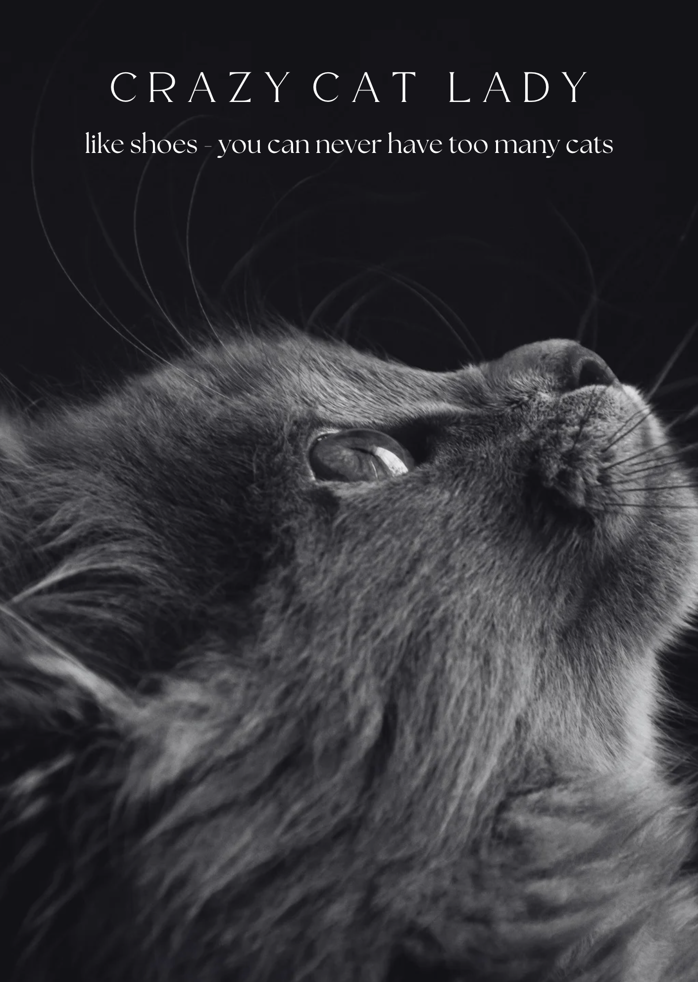 This Crazy Cat Lady print is the perfect addition to any cat lover's home. Available in A4 or A3 size, you can choose between a print only or framed option. Display your love for feline friends with this stunning print.