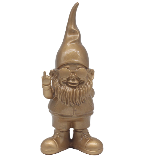 Add some whimsy to your garden with our large Gold Gnome Behaving Badly. This quirky figurine will bring a touch of humour to any space, making it a charming addition to your outdoor decor. With its eye-catching gold finish, this gnome is sure to stand out and make your guests smile.