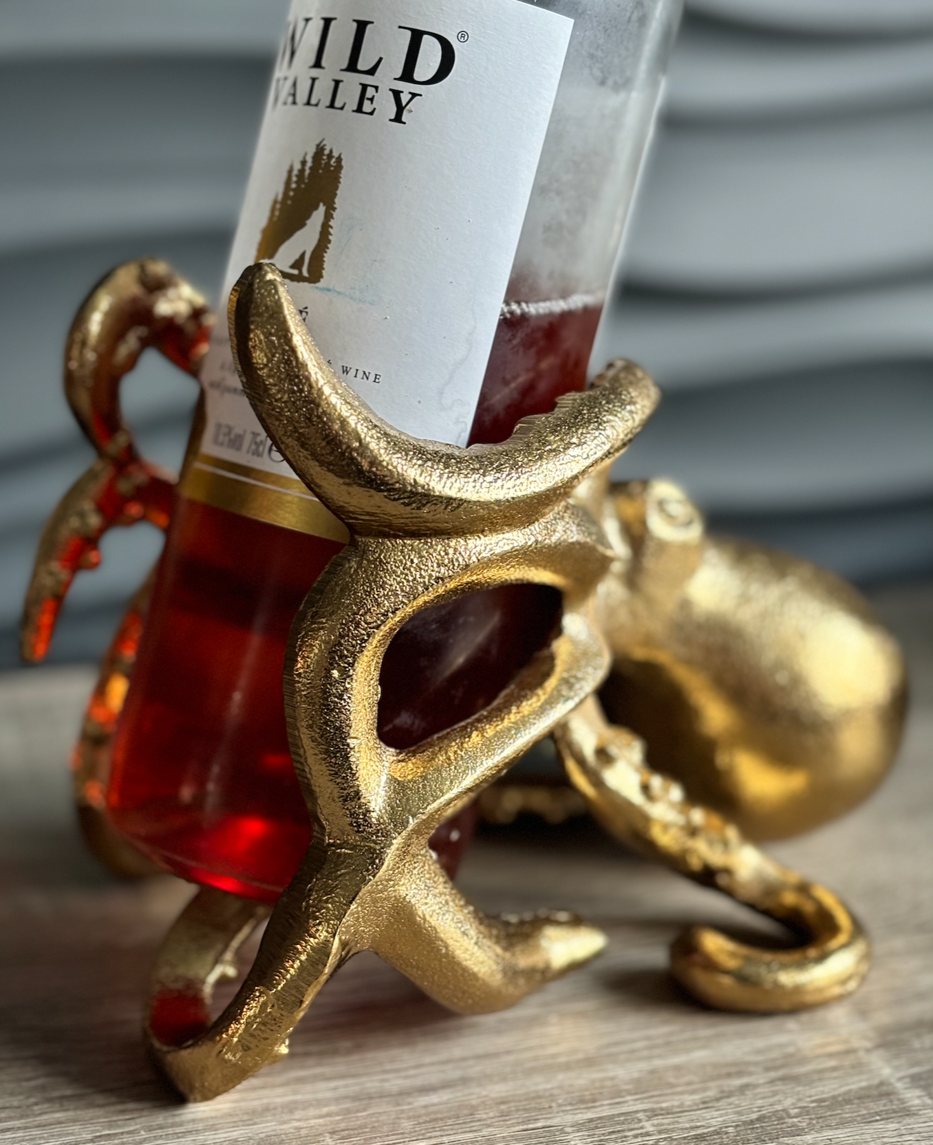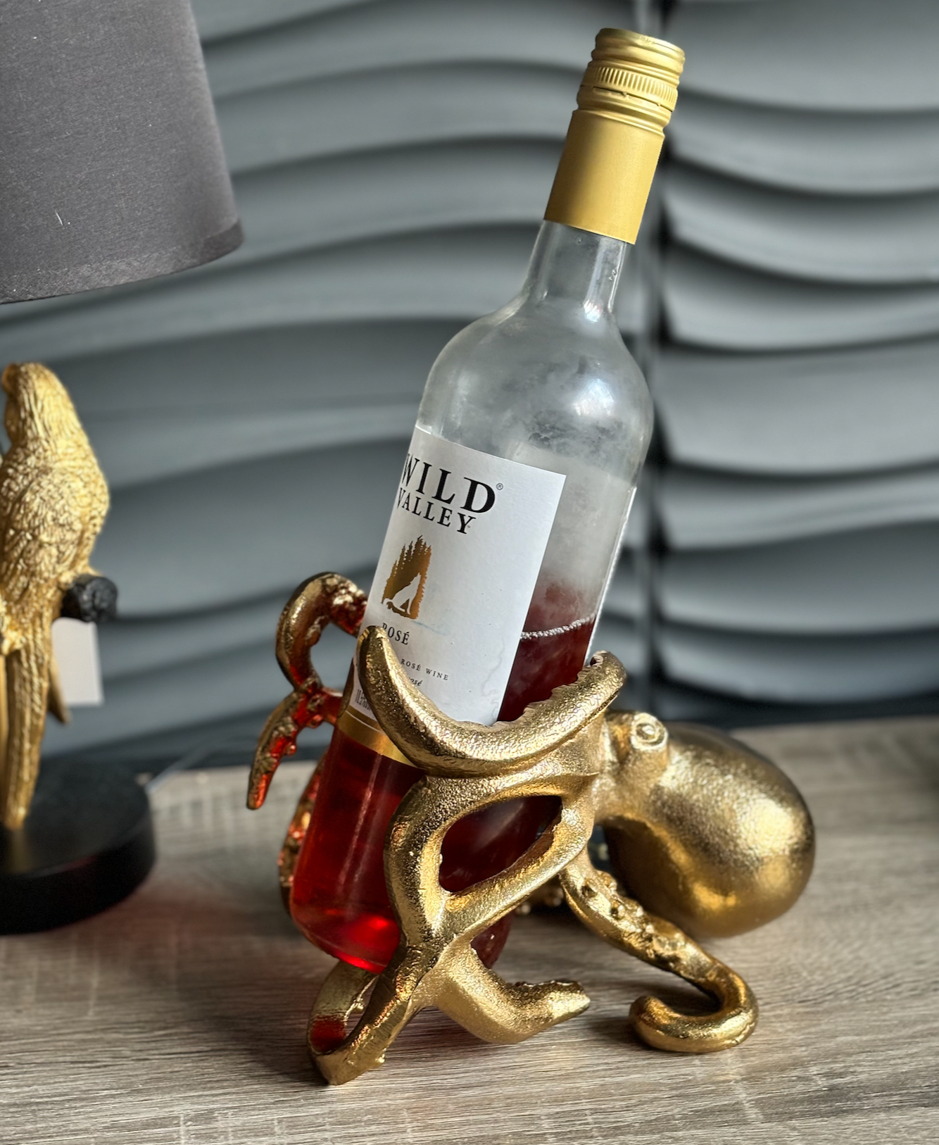 Add a touch of whimsy to your wine collection with our Gold Octopus Wine Bottle Holder. This stylish holder features a friendly octopus design, perfect for displaying your favourite bottles.