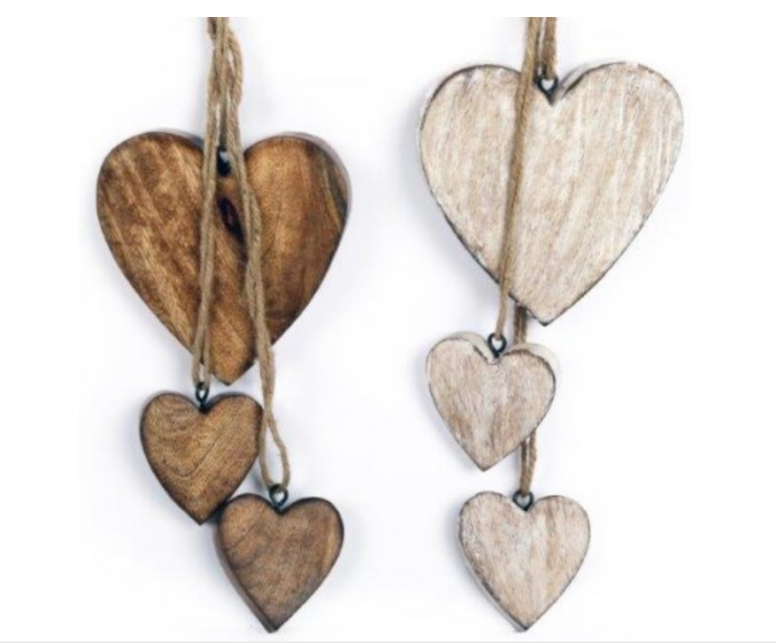 HANGING WOODEN CLUSTER HEARTS