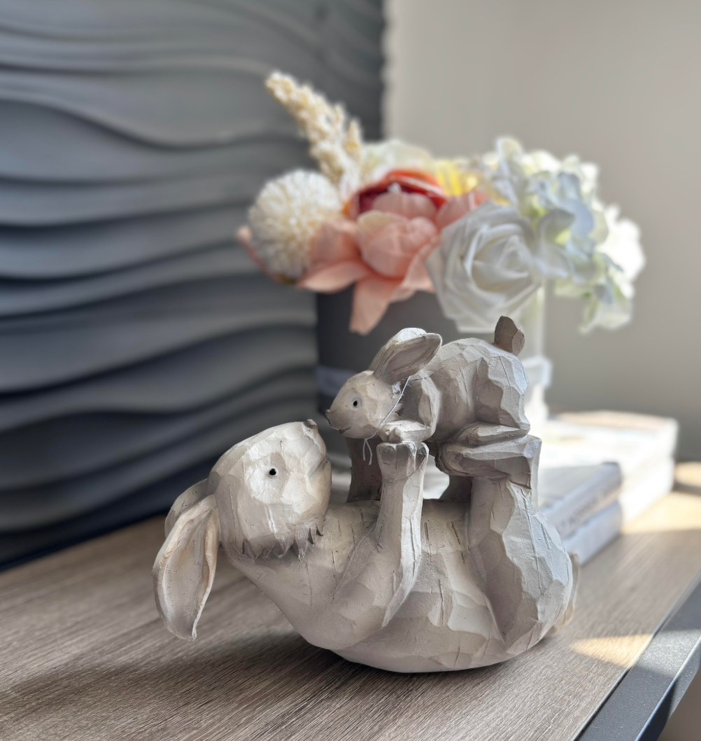 Introducing Hare Kissing Noses - the perfect way to add a touch of charm to your home. With a gorgeous wood effect, these adorable hares will bring a warm and welcoming feel. Embrace the friendly and cozy atmosphere with Hare Kissing Noses.
