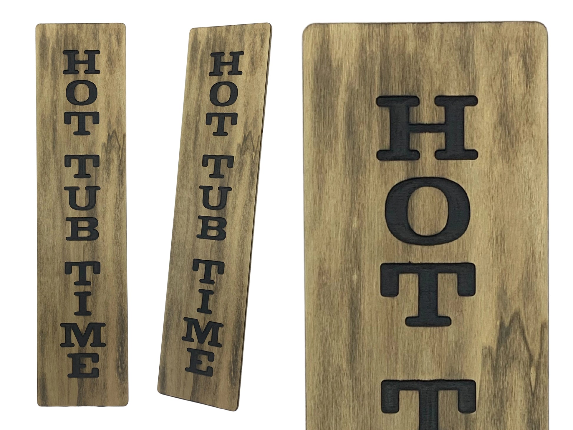 Transform your outdoor space with our Hot Tub Time Floor Standing Rustic Outdoor Sign. Made from durable Marine Ply, this sign features routed lettering and a rustic finish. Perfect for adding a personal touch and creating a relaxing atmosphere for your hot tub area. Pre-order now!