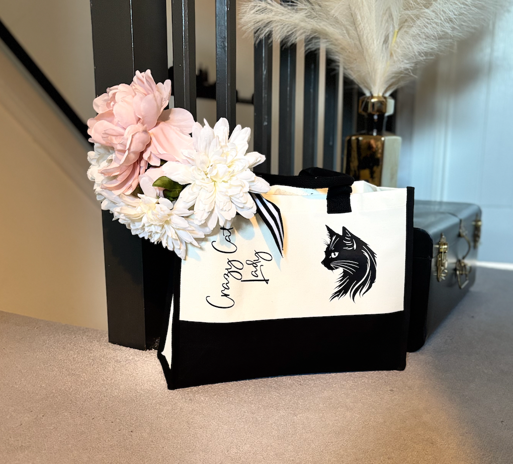 Luxury Crazy Cat Lady Tote bag & make-up bag