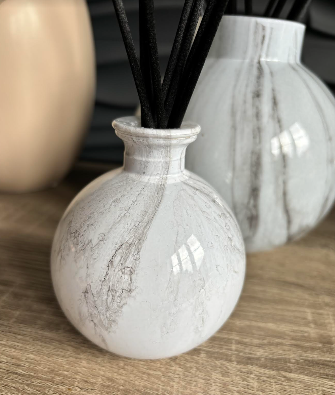 Create a stylish and fun atmosphere with our Marble Effect Glass diffuser bottle & reeds. This large bottle comes complete with 50 reed sticks, allowing you to fill it with your own fragrance. Let the marble effect add a touch of playfulness to your space.