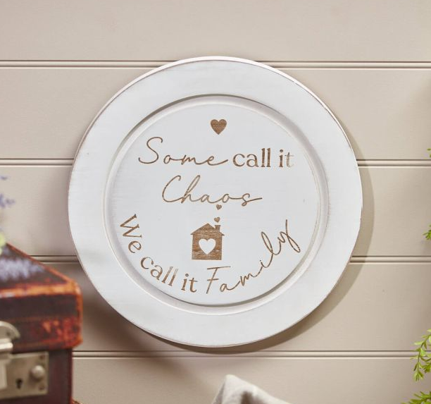 Add a touch of charm and humour to your home decor with the Some Call it Chaos Family Wood Round Plaque. This wooden plaque features a playful phrase that celebrates the chaos and love of family life. Hang it in any room for a friendly reminder of the joys and laughter of family.