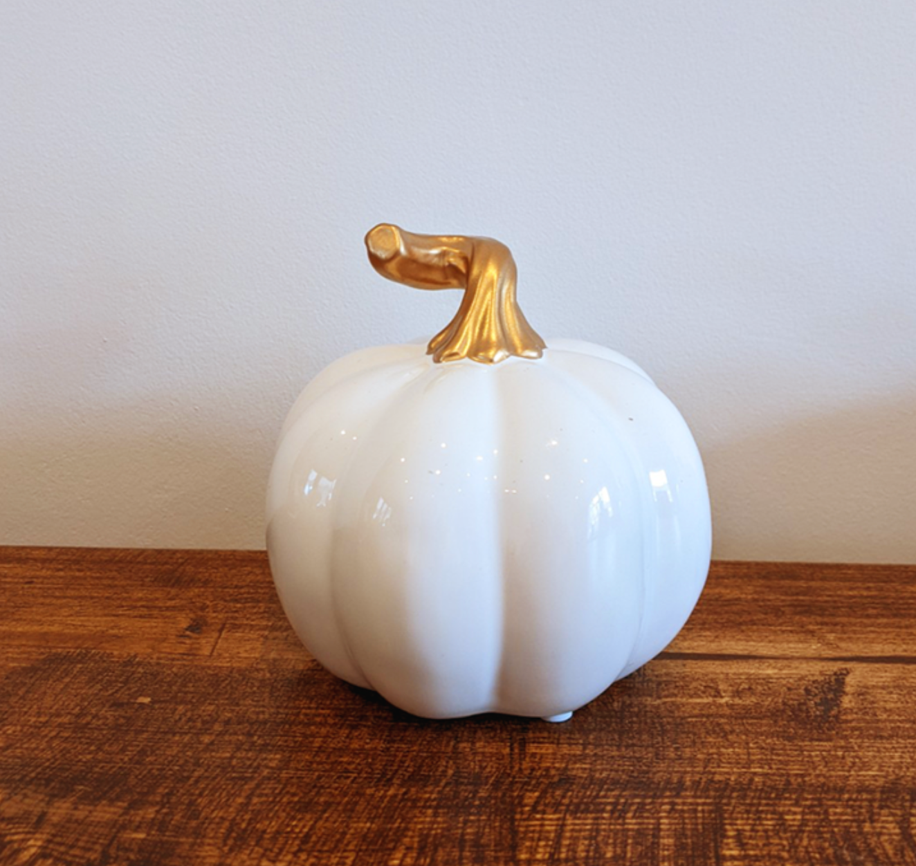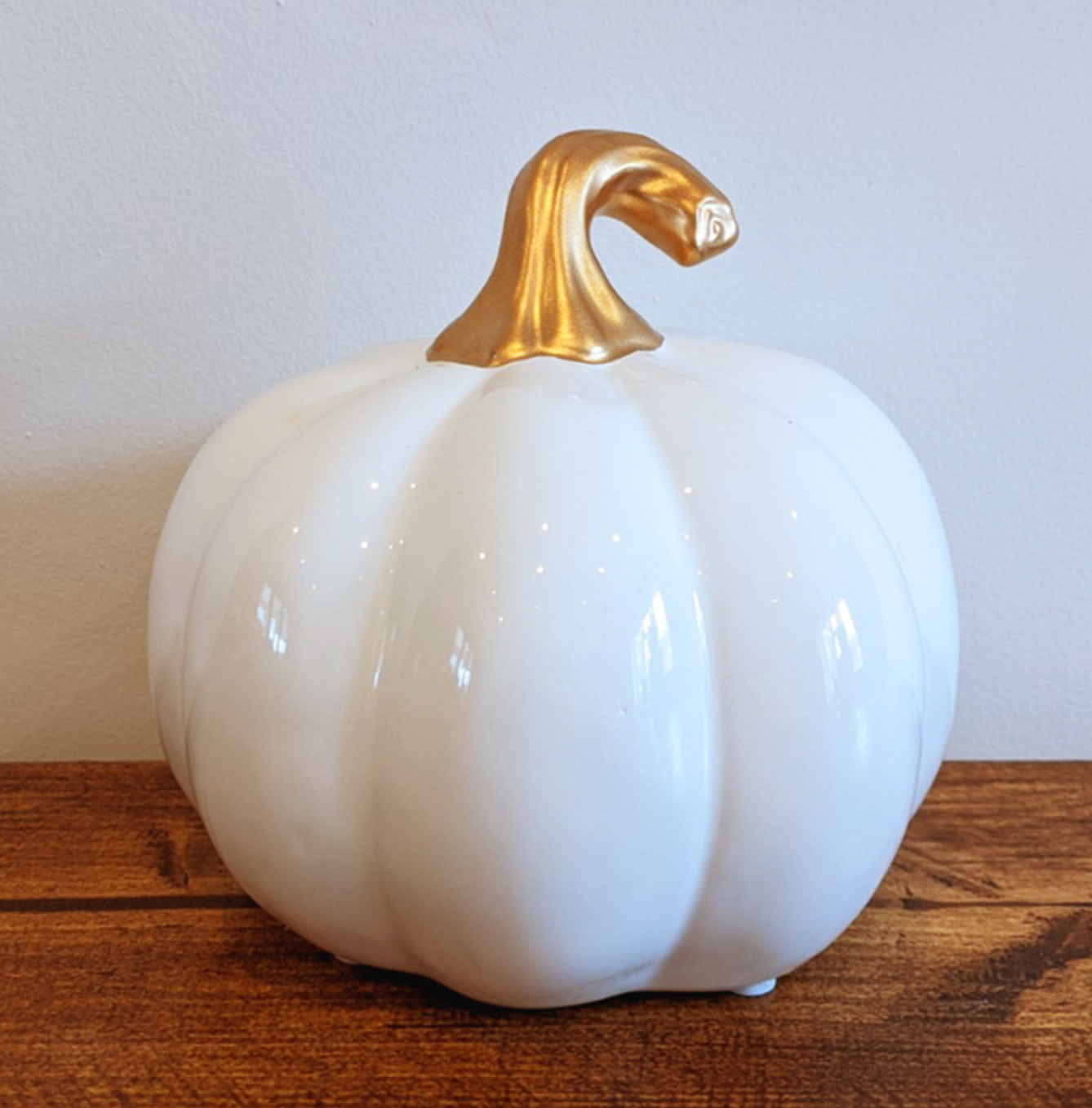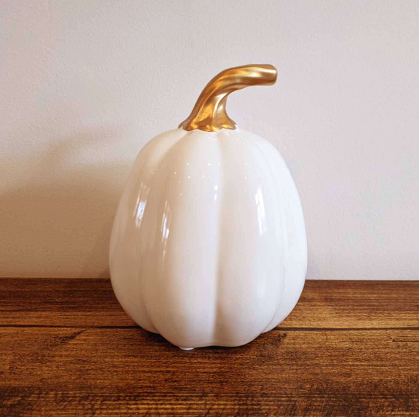 White Ceramic Pumpkin With Gold Stalk - available in 3 sizes